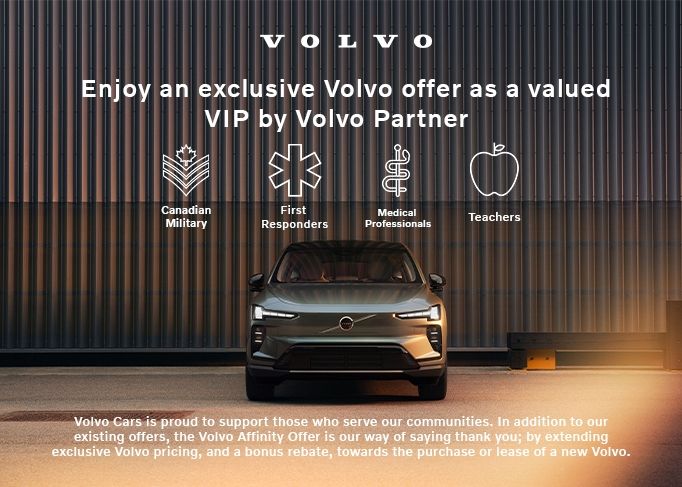 With extensive experience serving VIP and high-profile clients, discretion and attention to detail are always prioritized. Volvo's Exclusive VIP preferred programs offer additional incentives for qualifying professionals for Medical Professionals, Educators, First Responders, and for our Canadian Military and their families. Every interaction is delivered with professionalism and confidence ensuring an elevated experience that feels as effortless and reassuring as driving your new Volvo.